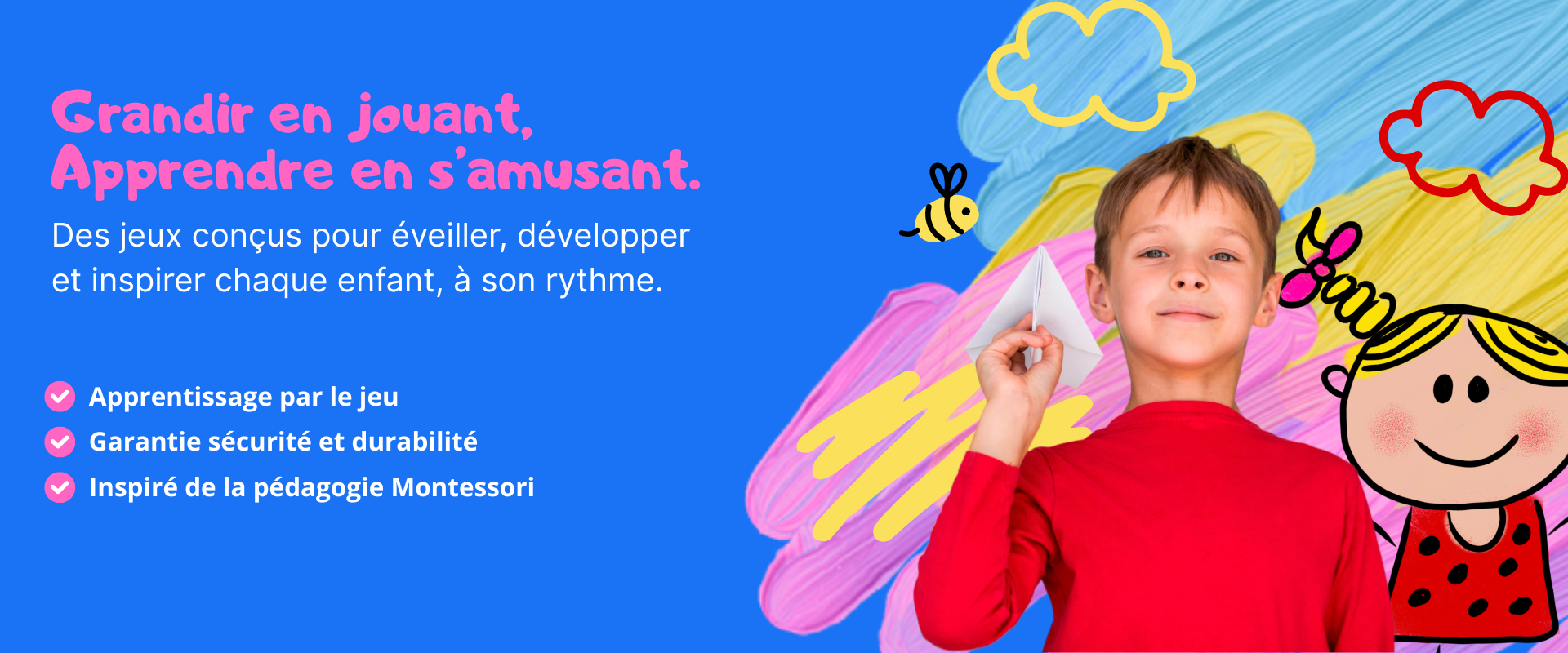 Favorisez l’éveil, la motricité et l’apprentissage par le jeu grâce à nos jouets éducatifs pensés pour stimuler l’autonomie et la curiosité naturelle des tout-petits.